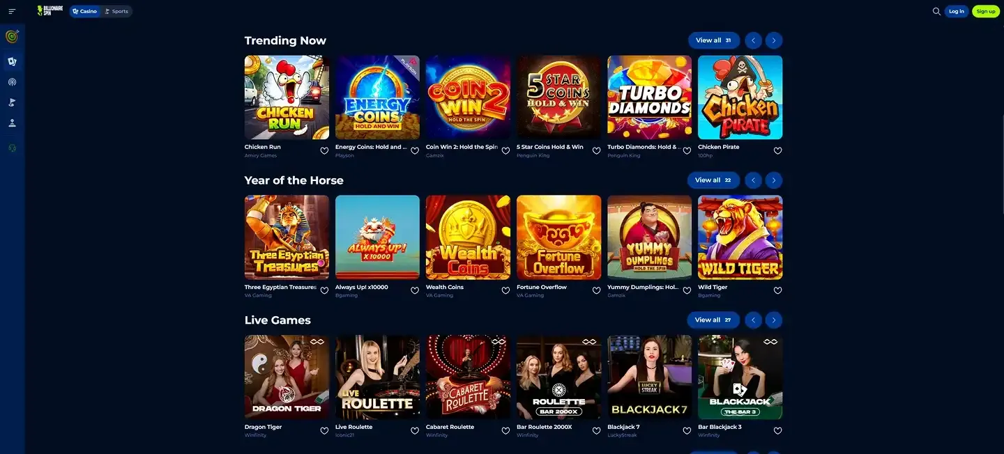 ¿Qué tipo de juegos están disponibles en la Billionaire Spin Casino app?