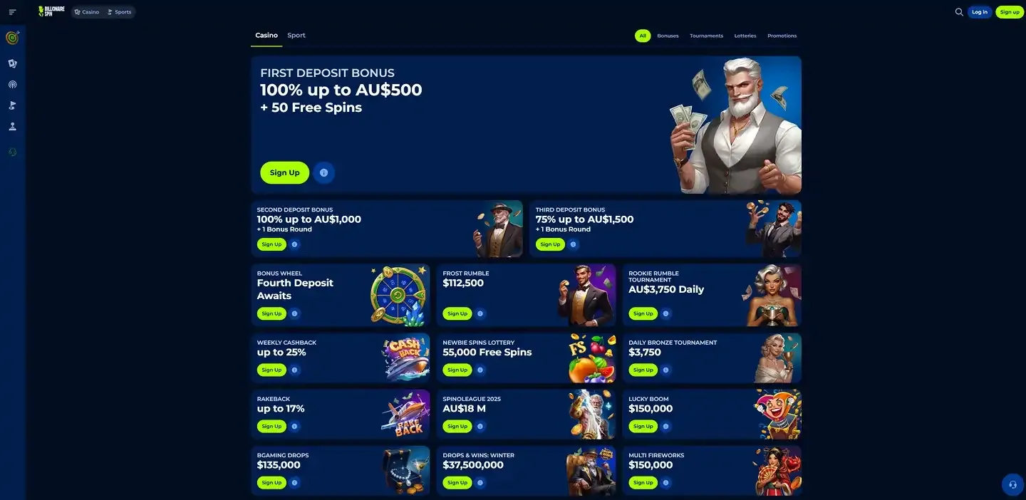 Ofertas Estacionales y Especiales de Billionaire Spin Casino